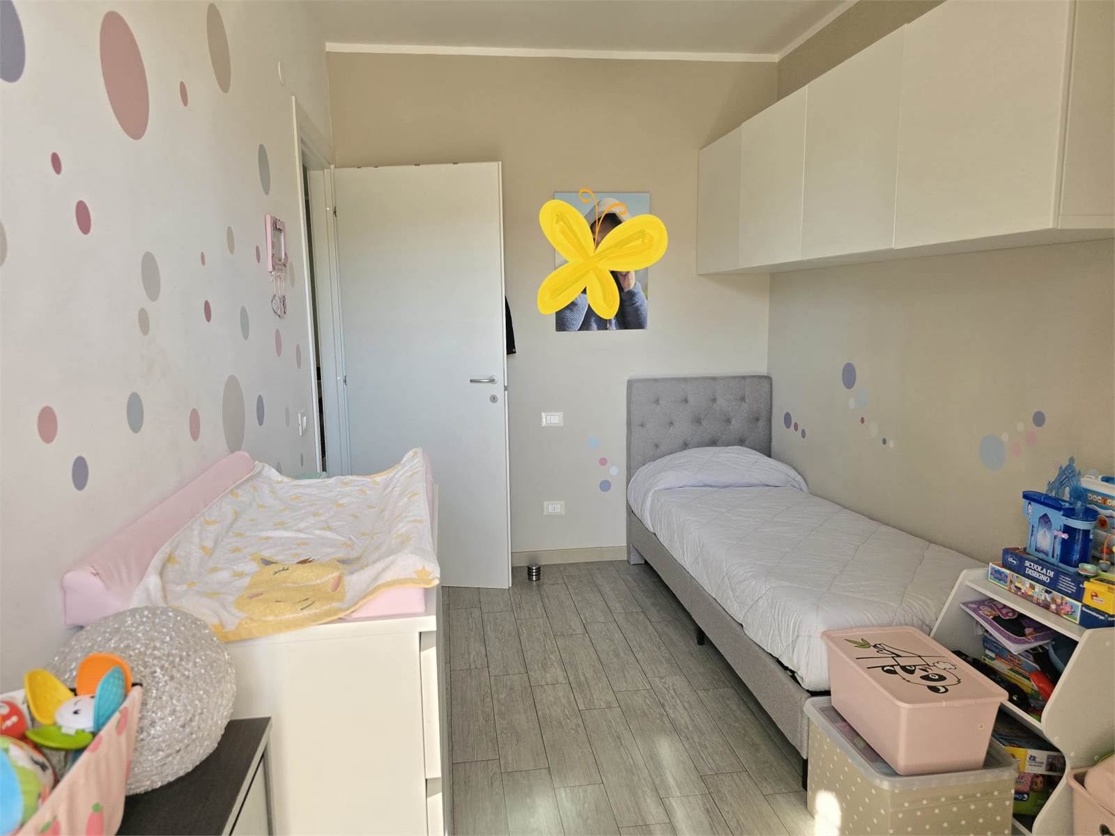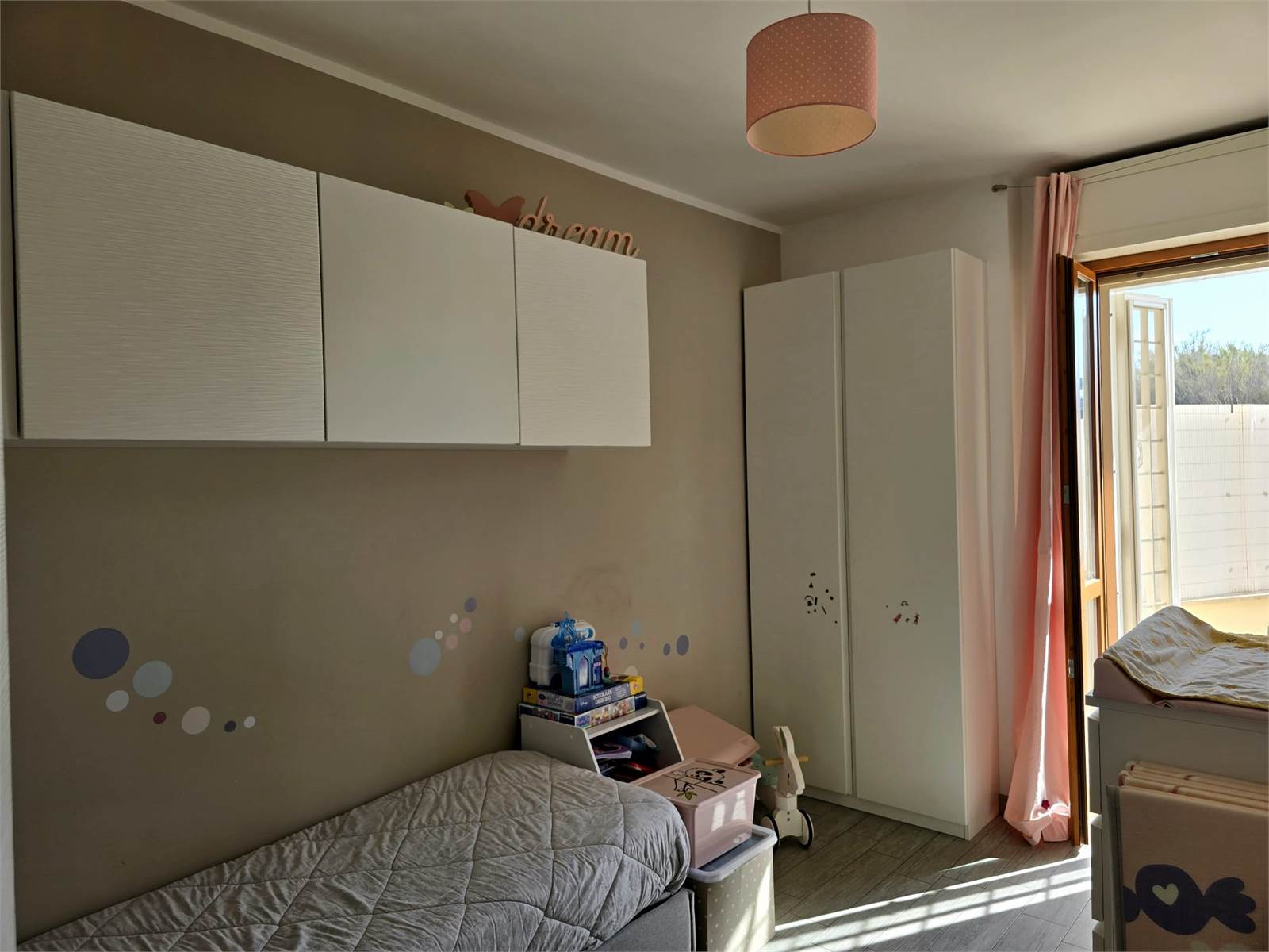 INTERNAMENTE SI COMPONE DI INGRESSO CON PORTONCINO BLINDATO, SOGGIORNO CON CUCINA A VISTA, CAMERA MATRIMONIALE, CAMERETTA E BAGNO FINESTRATO CON VASCA.