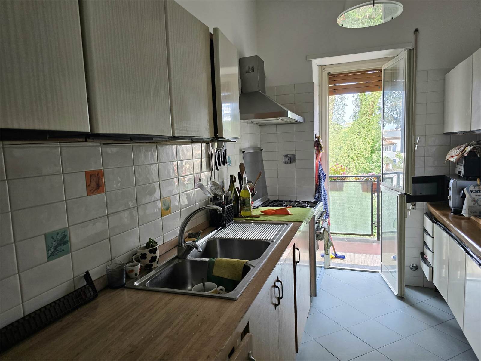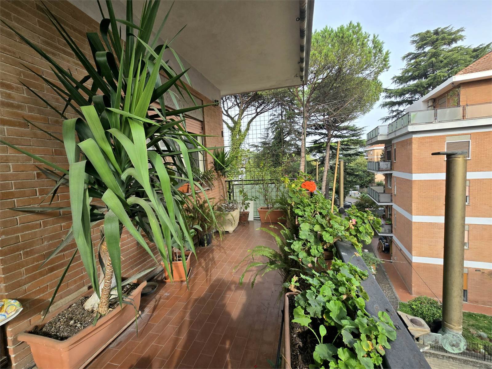 L'immobile si compone di Ampio Ingresso, Salone doppio con accesso al balcone abitabile, cucina con ampio tinello ed uscita sul balcone e soppalco, 3 camere da letto di cui una con il terzo balcone, corridoio con armadio a muro, ripostiglio, doppi servizi entrambi finestrati. L'appartamento ha una tripla esposizione con vista aperta sul verde nella più assoluta tranquillità. Completano la proprietà una Cantina di mq 7 ed un Posto auto nel garage condominiale di mq 14.
